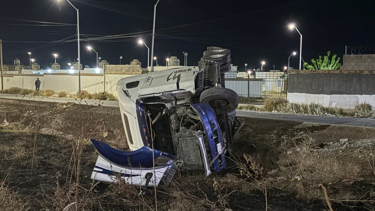 Un aparatoso accidente vial con volcadura se registró en el cruce de las calles Paseos del Sol y Sol de Nair, al suroriente de la ciudad, donde un tráiler terminó al interior de un arroyo, dejando como saldo a una familia lesionada.