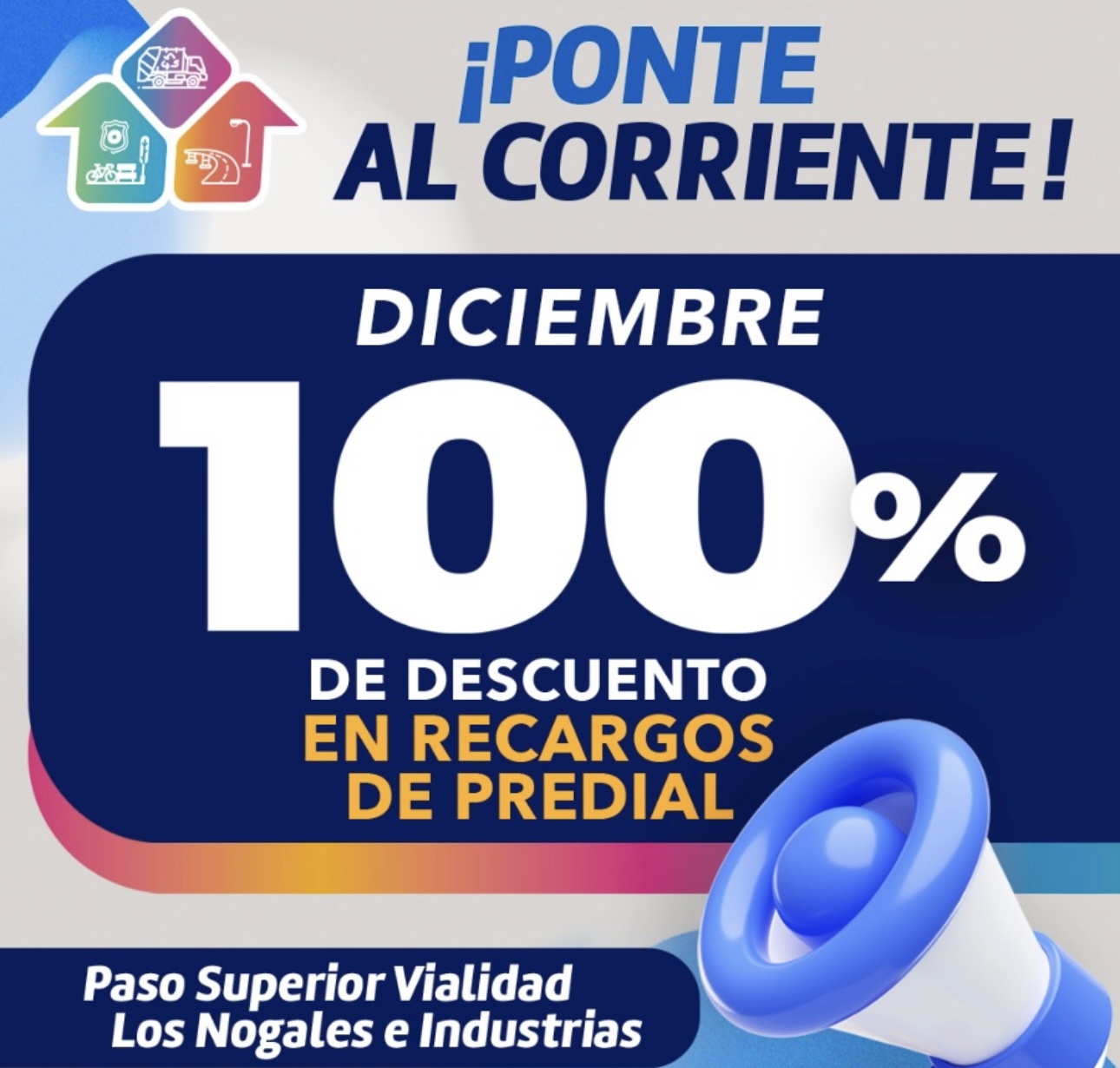 Ponte al corriente en tu Predial y aprovecha el descuento del 100% en los recargos de años anteriores