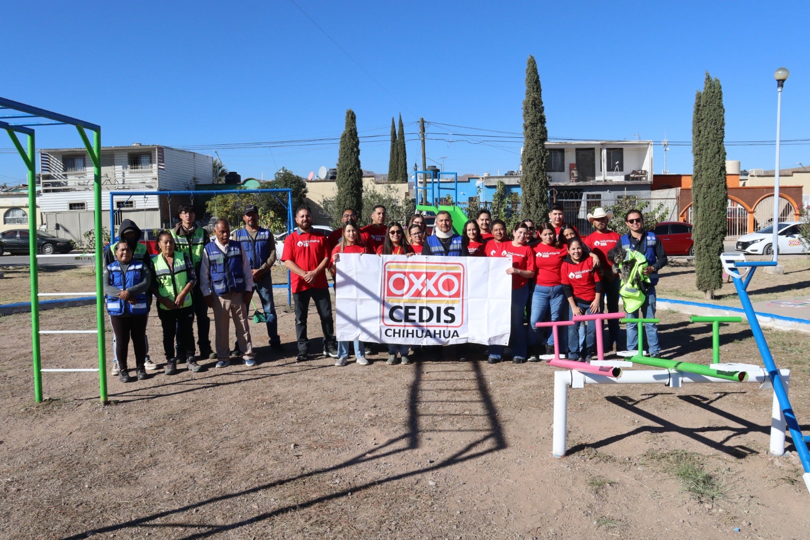 _*H. Ciudad de Chihuahua, Chih., a 10 de noviembre de 2025.-*_ Buscando la felicidad y sonrisas de las niñas y niños de Riberas de Sacramento, el Gobierno Municipal en colaboración con la cadena comercial OXXO, rehabilitaron el parque Volga ubicado en las inmediaciones de la colonia antes mencionada.