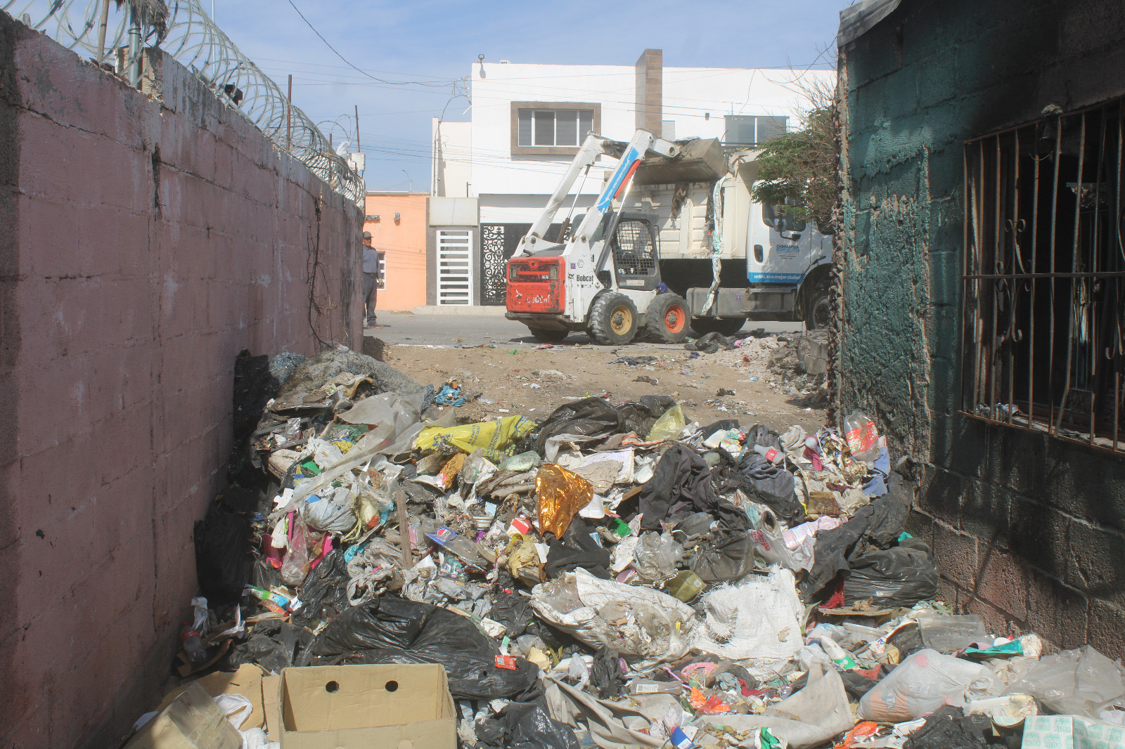 También, en la colonia Mármol, se intervino el frente de un domicilio de donde se retiraron 16 toneladas de basura y acumulación de tiliches.