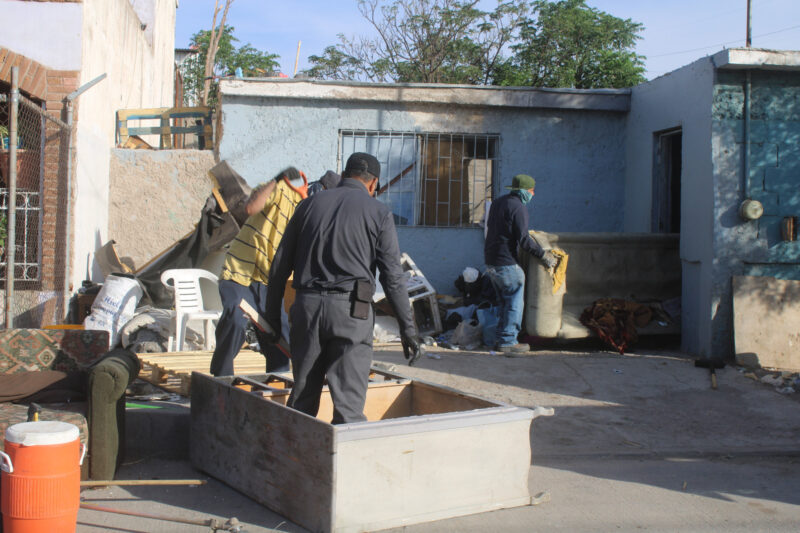 De una de las viviendas intervenidas, ubicada en la colonia Unidad Proletaria, se retiraron un estimado de 34 toneladas de basura. Para la limpieza de la misma, se tuvo presencia de personal de la Dirección de Seguridad Pública Municipal.