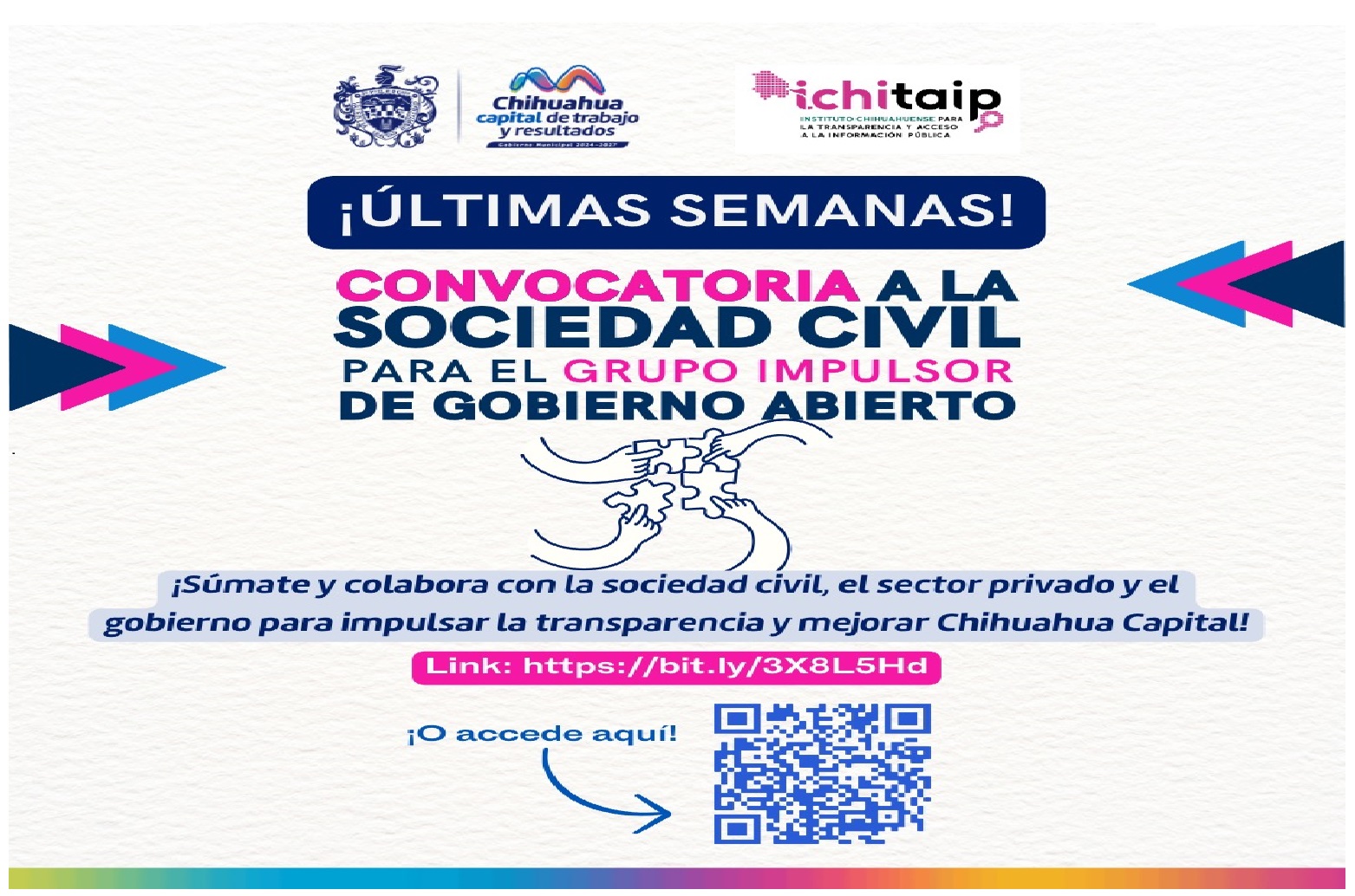 Chihuahua, Chih., a 5 de marzo de 2025.-_ El Gobierno Municipal, recuerda a la ciudadanía y a la sociedad civil organizada que la convocatoria para integrarse al Grupo Impulsor de Gobierno Abierto sigue abierta, y quedan pocas semanas para postularse