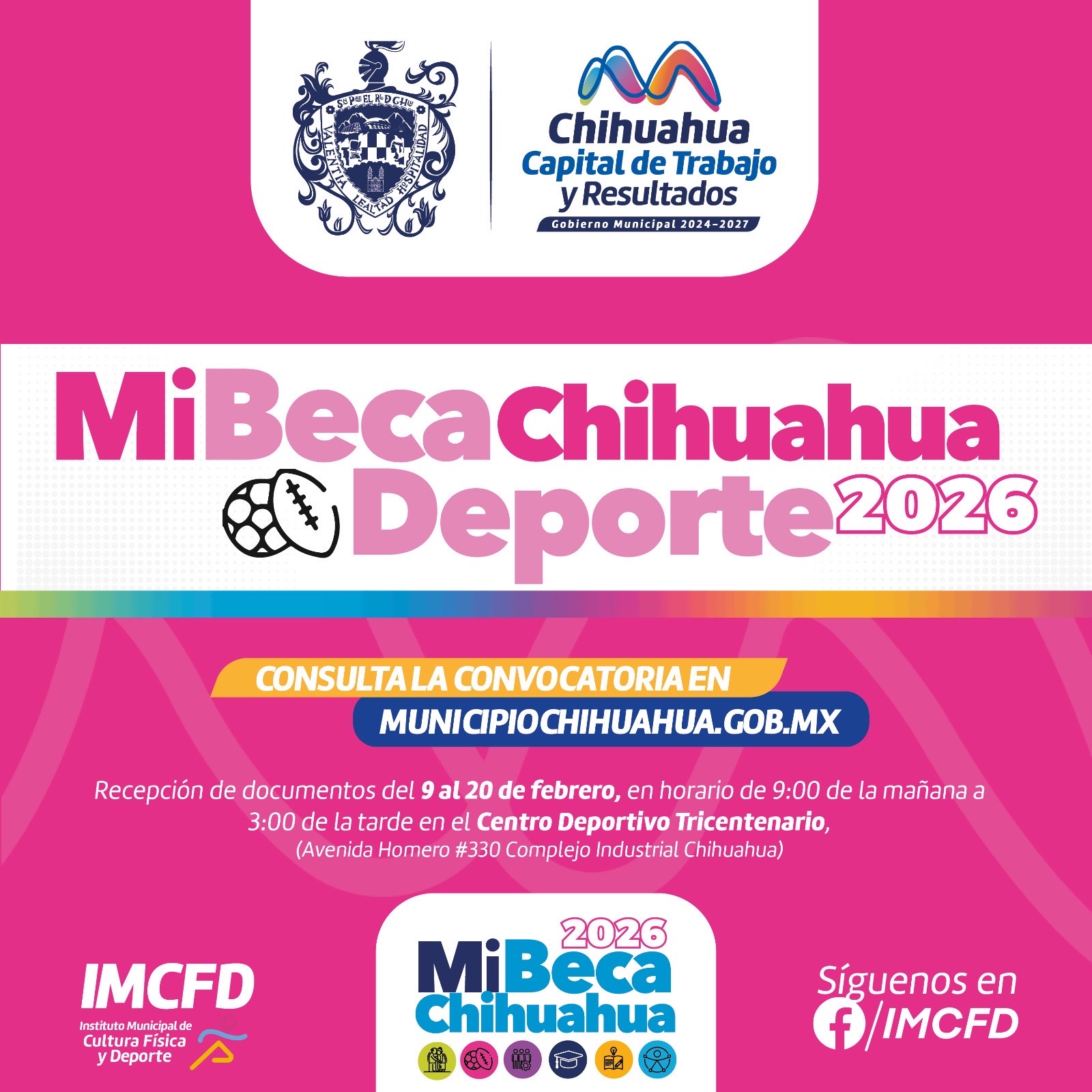 La convocatoria la podrán consultar a partir de la presente en la página https://www.municipiochihuahua.gob.mx/CCS/Convocatorias/CONVOCATORIA_MI_BECA_CHIHUAHUA_DEPORTE_2026.