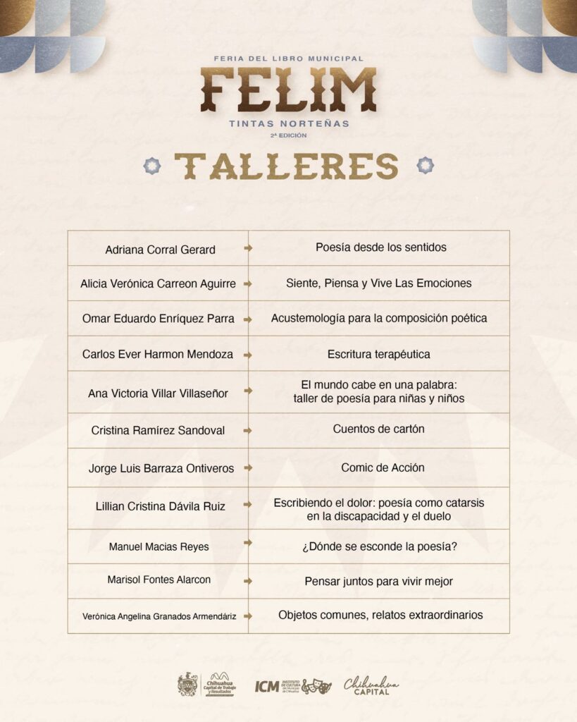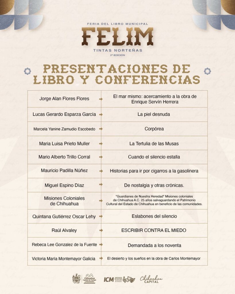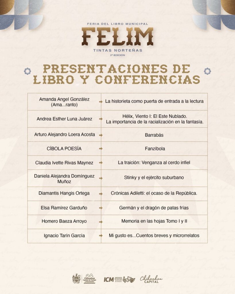 H. Ciudad de Chihuahua, Chih., a 23 de febrero de 2026.- El Gobierno Municipal de Chihuahua, a través del Instituto de Cultura, informa los resultados de la convocatoria Feria del Libro Municipal (FELIM) 2026, dirigida a editoriales, librerías, escritoras y escritores, talleristas y artistas de la región.