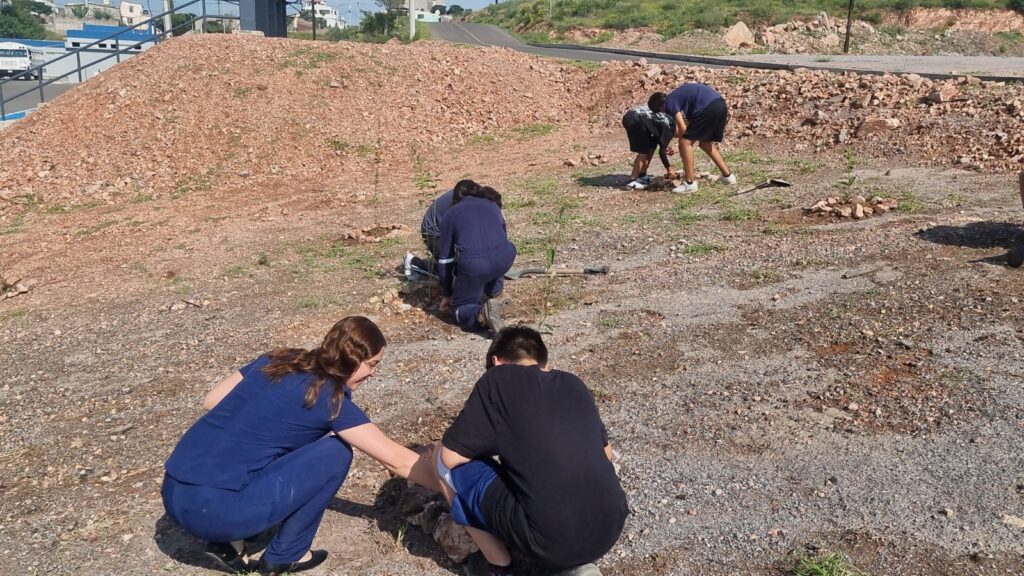 Fueron los mismos jóvenes quienes se encargaron de trazar los puntos donde se colocarían, cavar las fosas, plantarlos, y como parte de la responsabilidad, los estarán regando y se mantendrán pendientes de su cuidado en general para garantizar su desarrollo.