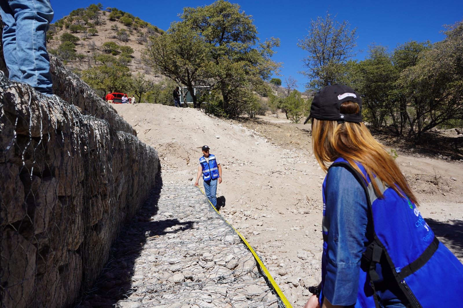 H. Ciudad de Chihuahua, Chih., a 12 de marzo de 2026.- El Gobierno Municipal de Chihuahua, a través del Fideicomiso para el Cuidado del Agua en el Municipio de Chihuahua, concluyó el proyecto de recarga artificial del acuífero Chihuahua-Sacramento en la comunidad de El Jardín, mediante la construcción de una presa filtrante de gaviones.