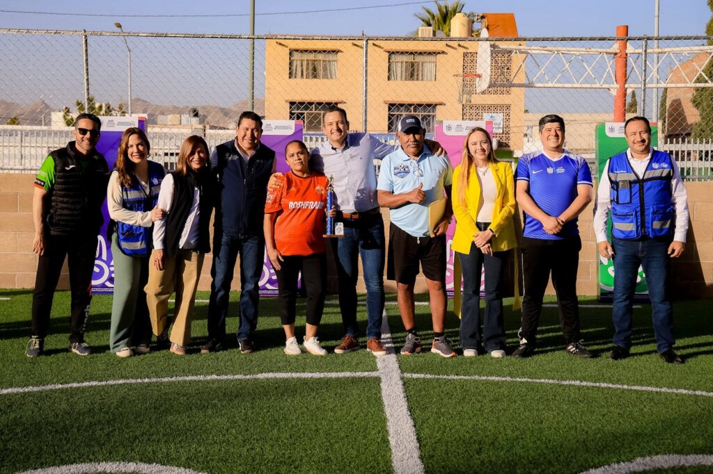 H. Ciudad de Chihuahua, Chih., a 18 de marzo de 2026.- El alcalde Marco Bonilla encabezó la entrega de la rehabilitación de la cancha de futbol rápido “El Bule”, un espacio emblemático para la comunidad que fue renovado gracias al Presupuesto Participativo 2025 y al compromiso de las familias que impulsaron este proyecto.