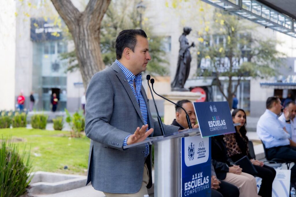 H. Ciudad de Chihuahua, Chih., a 5 de marzo de 2026.- El alcalde Marco Bonilla, realizó la entrega de cheques del Programa Escuelas Competitivas, recursos con los que escuelas de educación básica podrán adquirir equipamiento como computadoras, televisiones y kits de cámaras de vigilancia, mini splits, pizarrones, mobiliario, material didáctico y más.