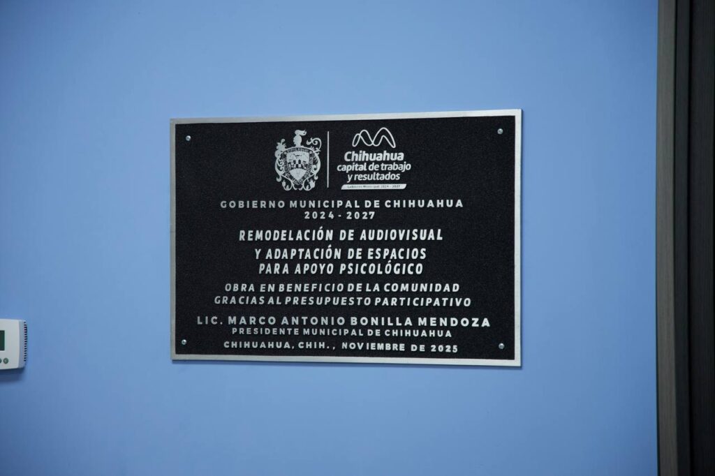 H. Ciudad de Chihuahua, Chih., a 2 de marzo de 2026.- El alcalde Marco Bonilla, entregó la remodelación de un salón audiovisual y la adaptación de un área para atención psicológica en la Preparatoria Maestros Mexicanos Norte, proyecto ganador del Presupuesto Participativo que contó con una inversión de 3.2 millones de pesos, en beneficio de mil 400 estudiantes.