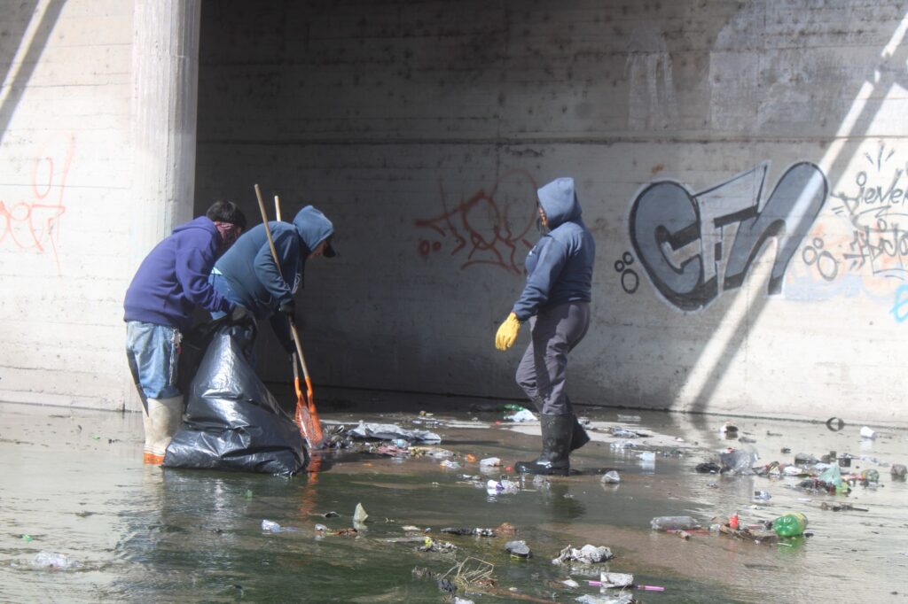 Asimismo, con cuadrillas manuales se atiende la pepena de basura que se arrastra con el agua o que personas en situación de calle depositan en el lugar, además del corte de hierba que crece en los taludes de este espacio.