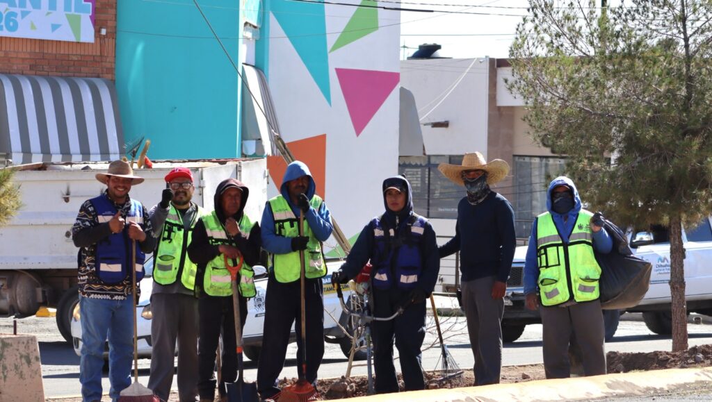 H. Ciudad de Chihuahua, Chih., a 9 de marzo de 2026.- En las vialidades del norte de la capital, cuando muchos descansan o comienzan su día, hay mujeres que forman parte de la Dirección de Mantenimiento Urbano del Gobierno Municipal, que con esfuerzo y dedicación trabajan para mantener limpia y en buen estado la ciudad.