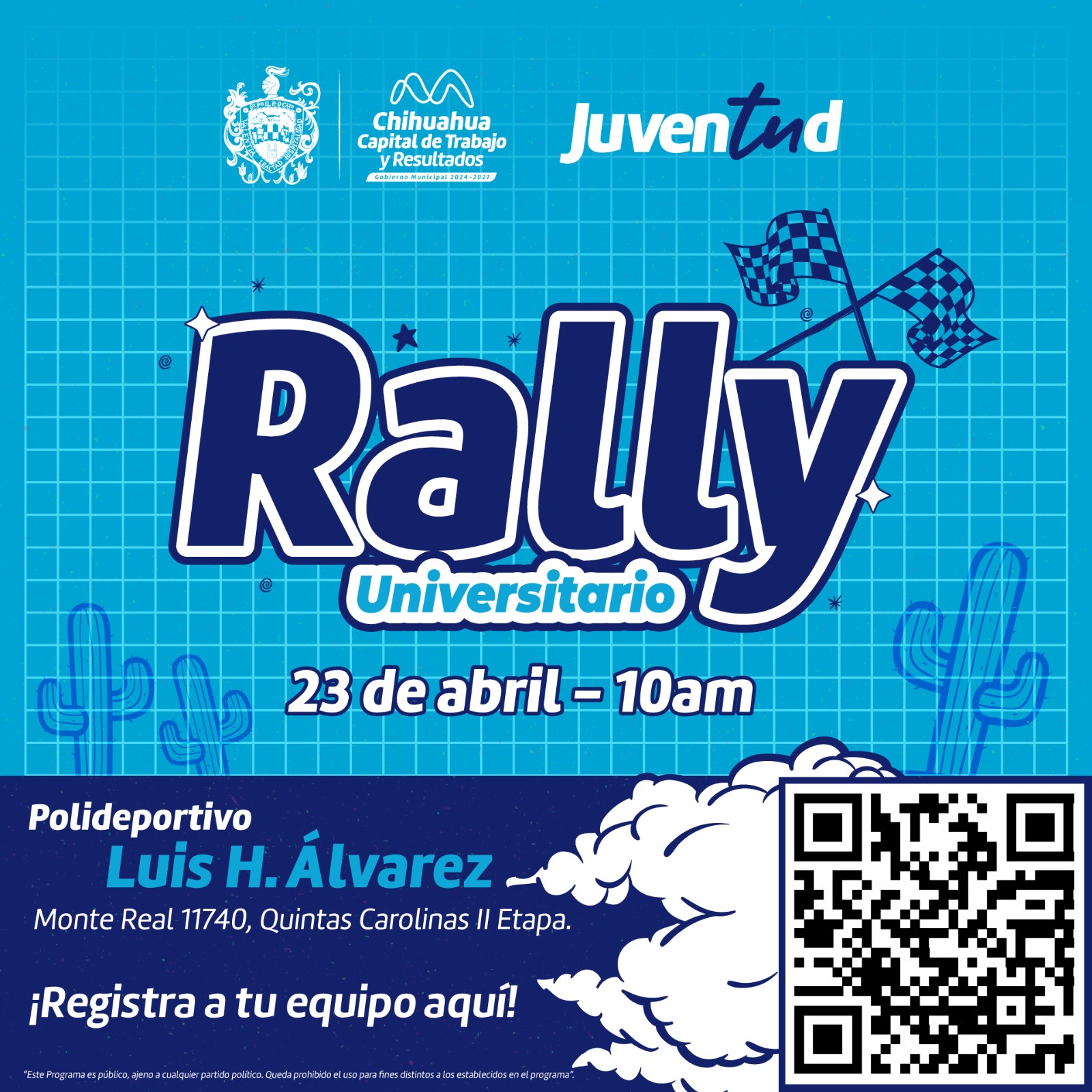 H. Ciudad de Chihuahua, Chih., a 21 de abril de 2026.- El Gobierno Municipal de Chihuahua, a través de la Dirección de Desarrollo Humano y Educación, invita a las y los jóvenes universitarios a participar en el Rally Universitario, una actividad diseñada para poner a prueba sus habilidades físicas y mentales.