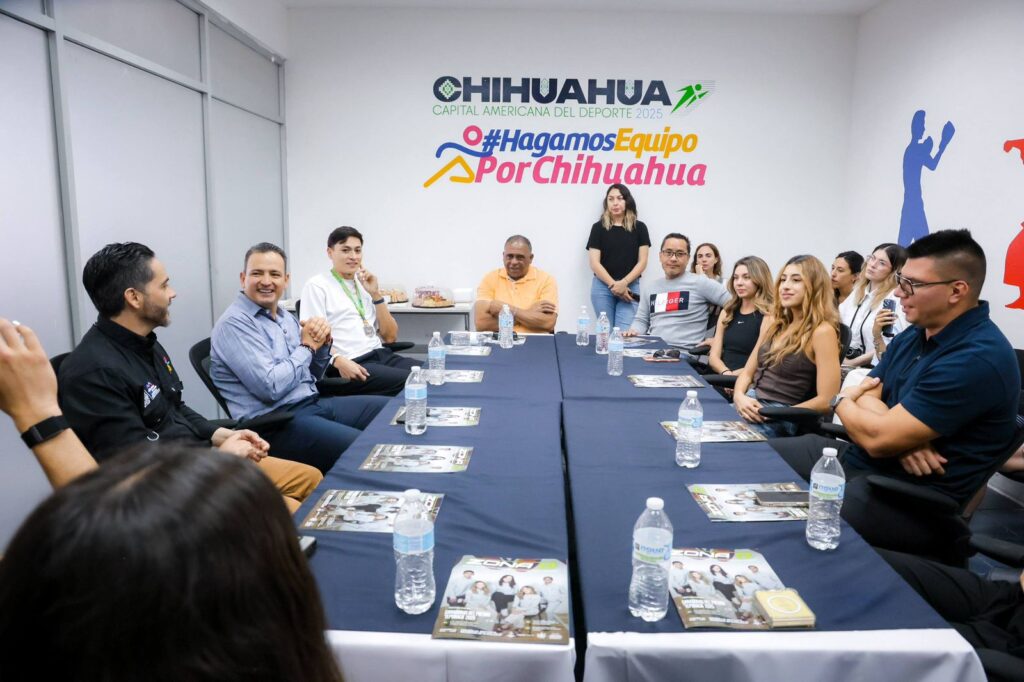H. Ciudad de Chihuahua, Chih., a 31 de marzo de 2026.- El alcalde de Chihuahua, Marco Bonilla, se reunió con atletas y entrenadores beneficiarios de “Meta Olímpica CUU”, para reconocer su esfuerzo y ser parte de esta iniciativa del Gobierno Municipal que busca darles seguimiento para que puedan llegar a los Juegos Olímpicos Los Ángeles 2028.