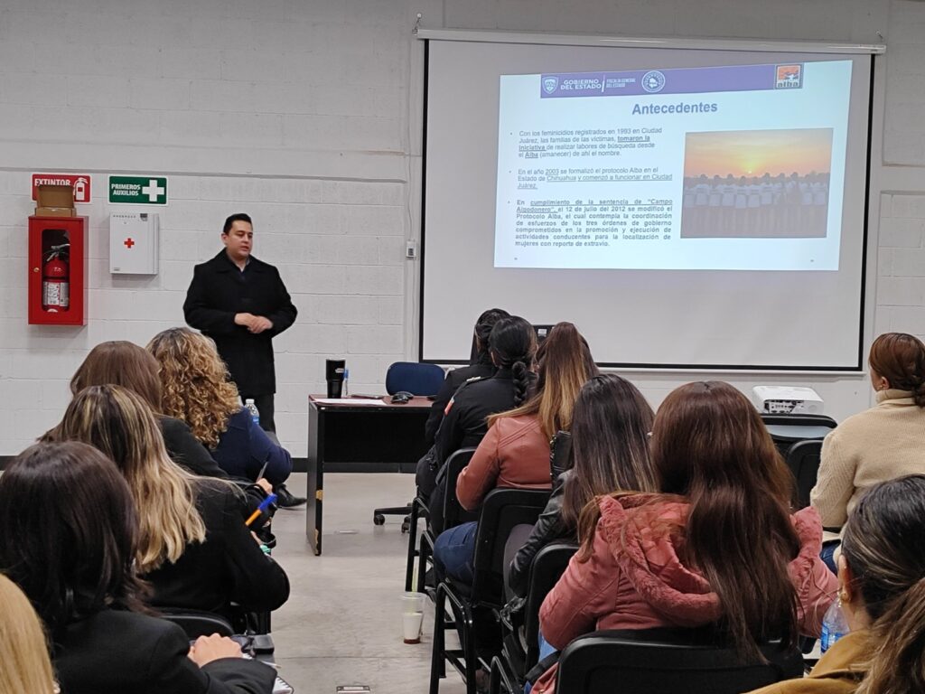 H. Ciudad de Chihuahua, Chih., a 26 de febrero de 2026.- Como parte del compromiso del alcalde Marco Bonilla en contar con una policía más capacitada, diversas unidades de la Dirección de Seguridad Pública Municipal (DSPM) reforzaron conocimientos mediante una capacitación en búsqueda y localización de personas desaparecidas, en conjunto con el Comité de Atención de Violencia Familiar y de Genero.