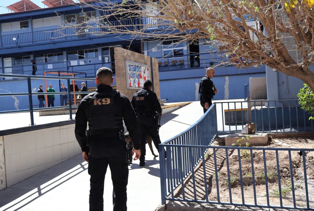 H. Ciudad de Chihuahua, Chih., a 2 de marzo de 2026.- Con la finalidad de ofrecer a la comunidad escolar entornos seguros para su desarrollo integral, el Gobierno Municipal, a través de la Dirección de Seguridad Pública, supervisa planteles educativos para detectar sustancias u objetos prohibidos para brindar mayor seguridad a alumnos, padres de familia y docentes.