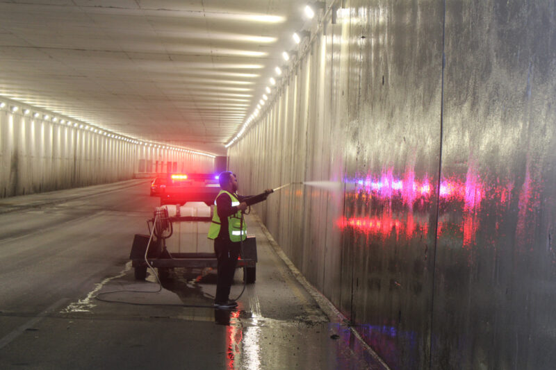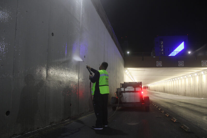 H. Ciudad de Chihuahua, Chih., a 19 de junio de 2025.- Con el objetivo de mejorar la imagen urbana, así como la visibilidad de los conductores, el Gobierno Municipal, a través de la Dirección de Servicios Públicos Municipales, realizó acciones de limpieza y lavado en el túnel de la avenida Independencia.
