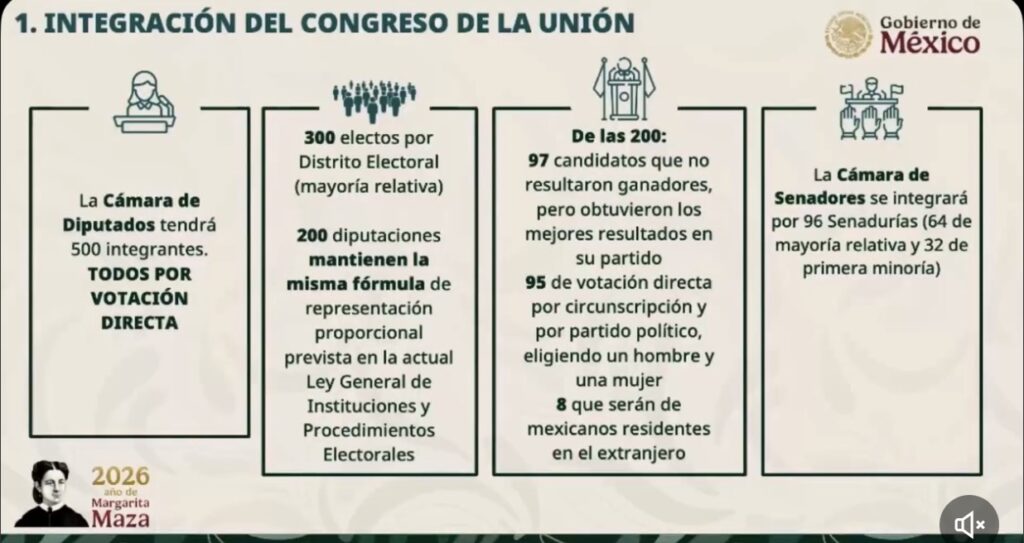 La secretaria de Gobernación, Rosa Icela Rodríguez, detalló cómo quedaría la nueva integración del Congreso con la propuesta de reforma electoral de la presidenta Claudia Sheinbaum.