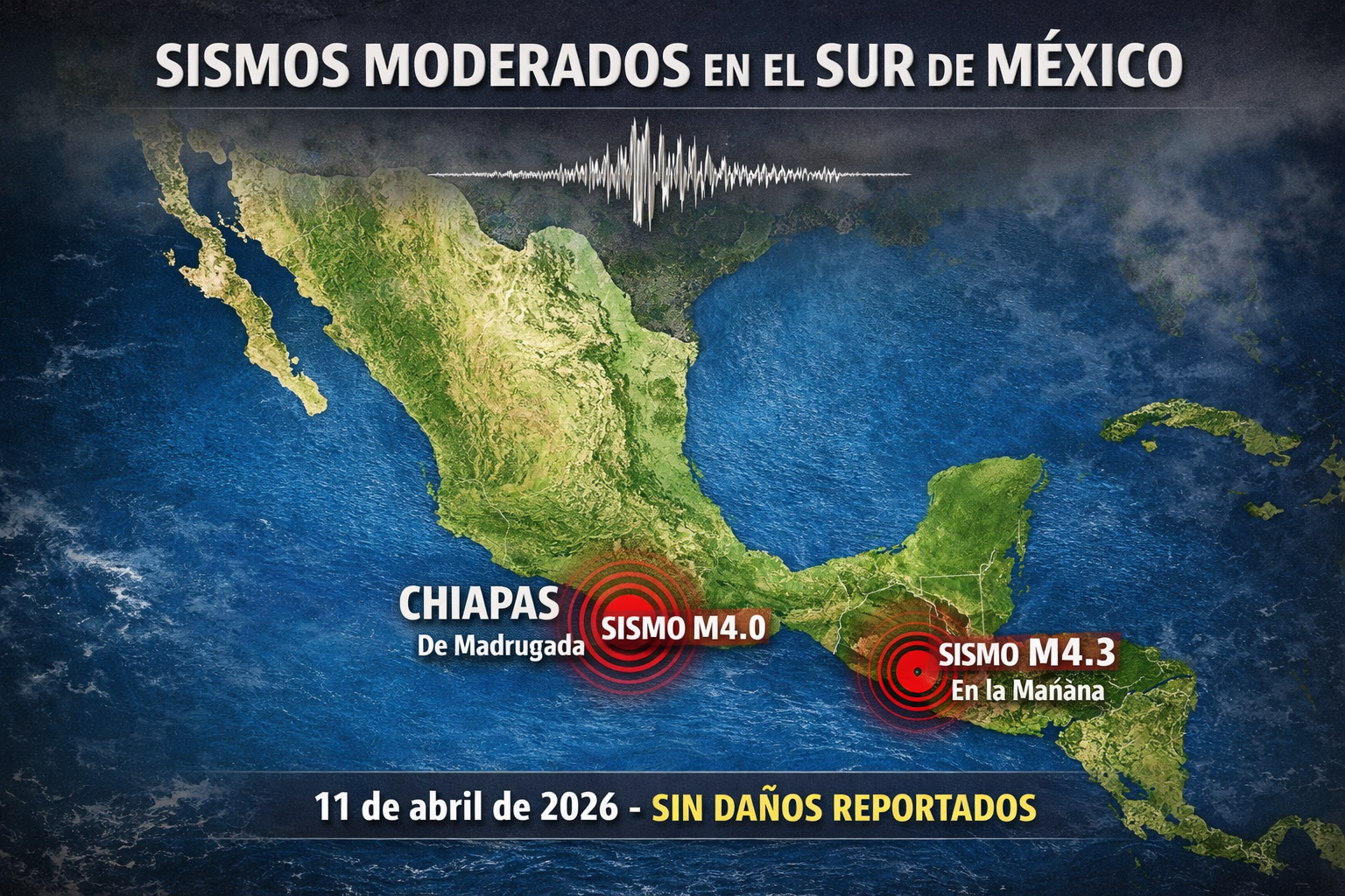 El primer movimiento, de magnitud 4.0, se registró en Chiapas durante la madrugada. Horas después, un segundo sismo de magnitud 4.3 ocurrió en Oaxaca ya entrada la mañana. Hasta el momento, las autoridades no han reportado daños materiales ni víctimas.