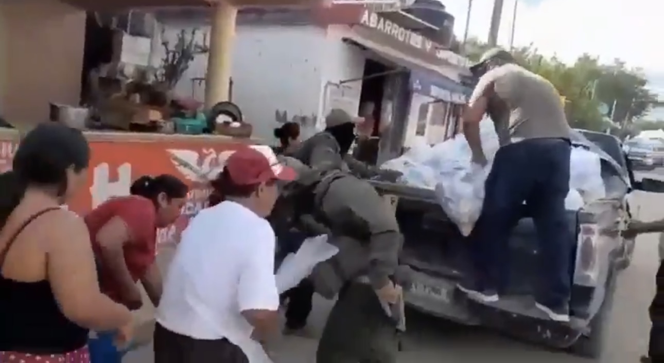 Gobierno estatal y federal insisten en que “ninguna organización ajena al Estado puede entregar apoyos”. Pero en Tihuatlán, los únicos que llegaron con bolsas fueron los que también cargaban fusiles.