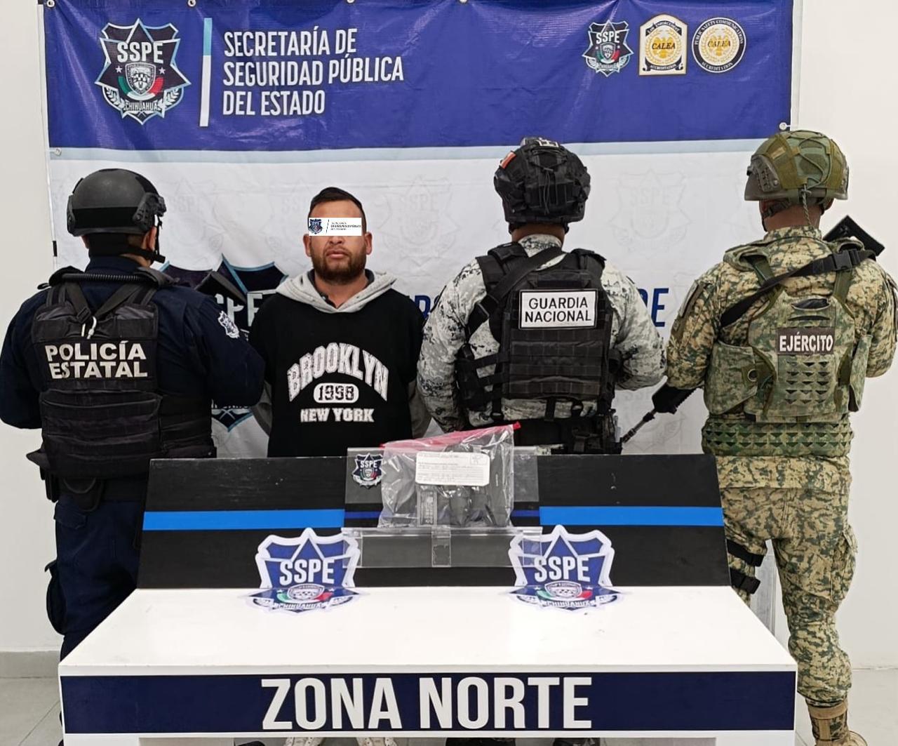 Como parte de las acciones de disuasión del delito, la Secretaría de Seguridad Pública del Estado (SSPE), en colaboración con Guardia Nacional y Ejército Mexicano, llevó a cabo la detención de un hombre en Ciudad Juárez, identificado como Gerardo Adrián F. R., quien presuntamente realizaba actividades de halconeo en la zona fronteriza.