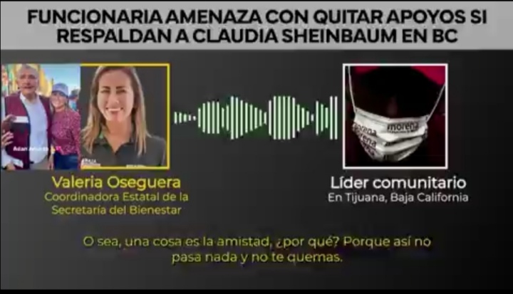 Una funcionaria de la Secretaría de Bienestar, dependencia a cargo de programas sociales del gobierno federal, amenazó con quitar los apoyos a las personas que apoyen a Claudia Sheinbaum, candidata de Morena a la gubernatura de Baja California.
