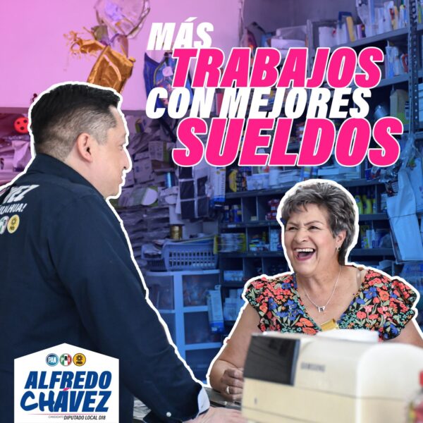 Chihuahua, Chih. – El candidato de la coalición Juntos Defendamos a Chihuahua por el Distrito 18, Alfredo Chávez, presentó en su paquete de propuestas “Más Trabajos con Mejores Sueldos”, en respuesta a las políticas públicas fallidas del Gobierno Federal, que han fracasado en fomentar el desarrollo y la inversión necesarios para generar mayores ingresos y reducir la pobreza extrema en México.