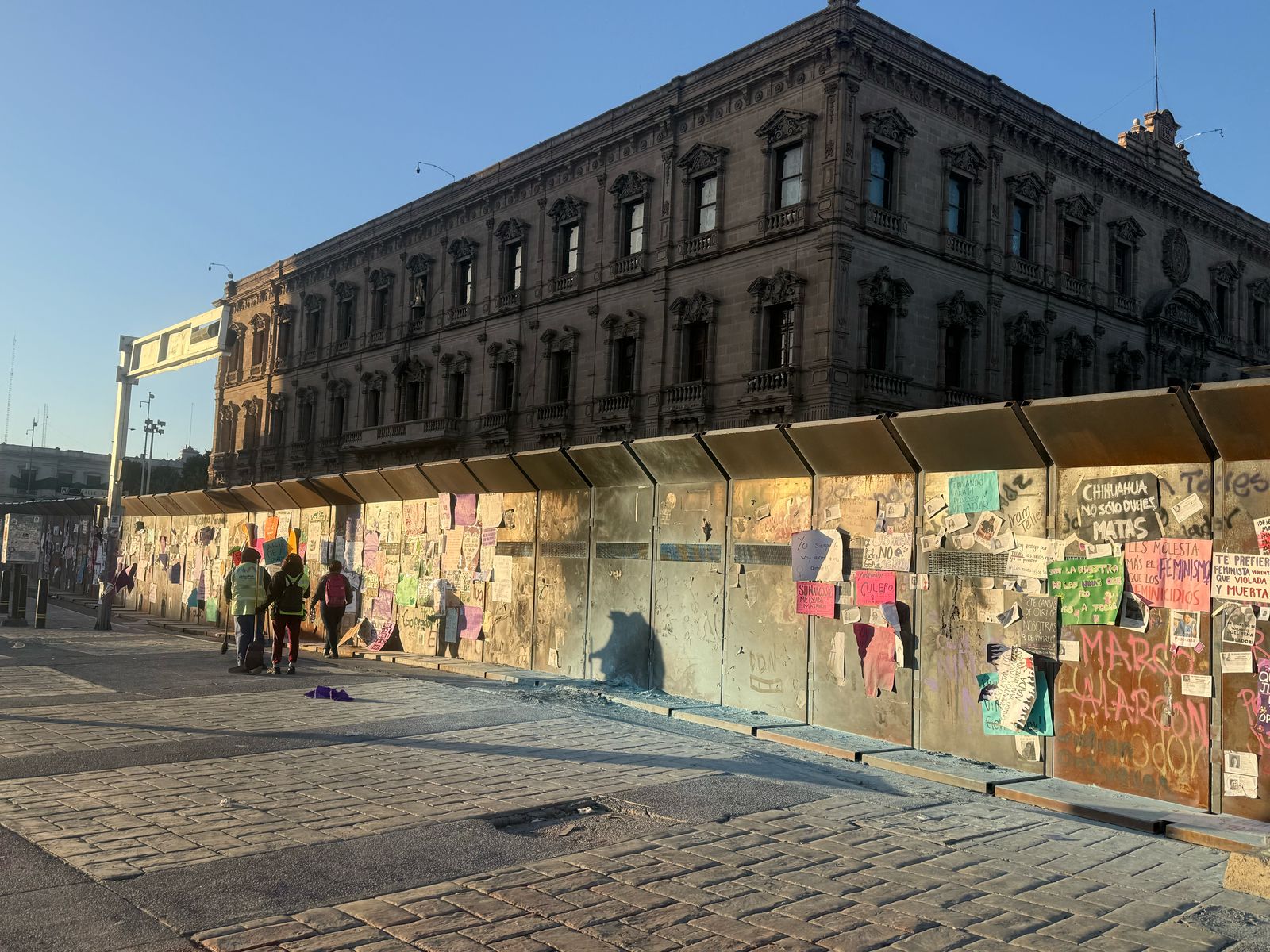 Continúan retirando las placas de protección en el Congreso del Estado de Chihuahua, a dos semanas de la marcha del 8M