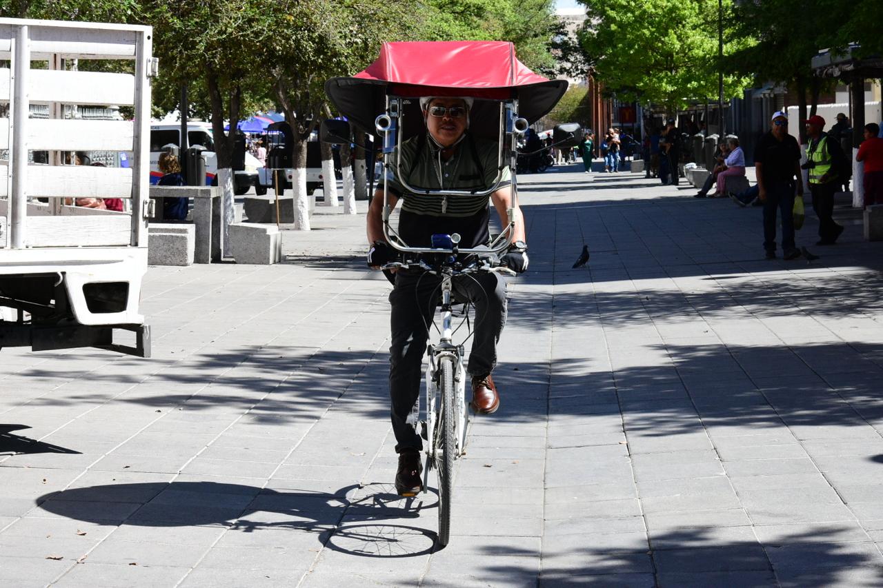 Le gana al sol con ingenio: maestro jubilado adapta su bicicleta con toldo en Chihuahua