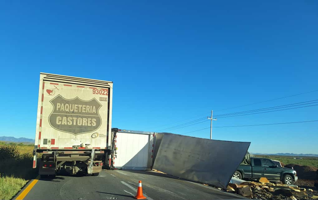 Rapiñan carga tras volcadura de tráiler con huevo en la carretera a Ciudad Juárez