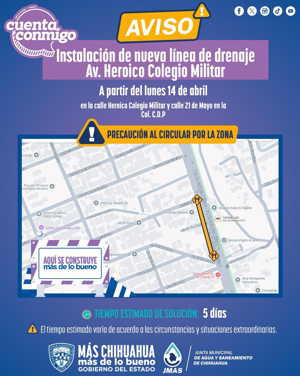 Instalará JMAS Chihuahua 116 metros de drenaje en la avenida Heroico Colegio Militar