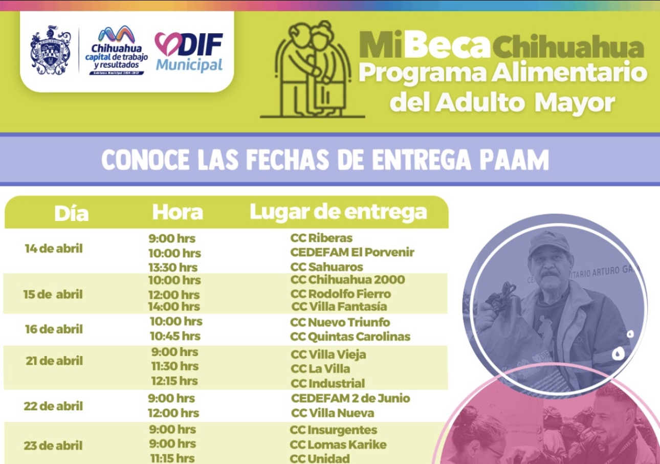 Chihuahua, Chih. A 1 de septiembre de 2024.- El Gobierno Municipal, a través del DIF, informa a las y los seleccionados del Programa Alimentario del Adulto Mayor (PAAM) las fechas en las que podrán acudir a su centro comunitario: 2 de septiembre: 3 de septiembre: 4 de septiembre: 6 de [...]