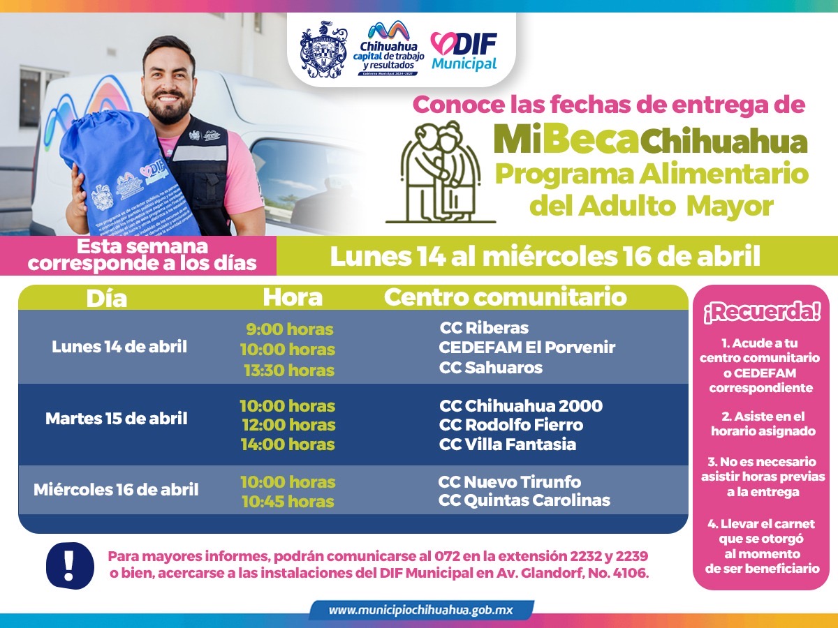 Chihuahua, Chih., a 27 de octubre de 2024.-*_ El Gobierno Municipal, a través del DIF, informa a las y los solicitantes del Programa Alimentario del Adulto Mayor (PAAM) los centros comunitarios a los que podrán acudir por su entrega del 29 al 31 de octubre. *29 de octubre:*– Desarrollo Urbano, [...]