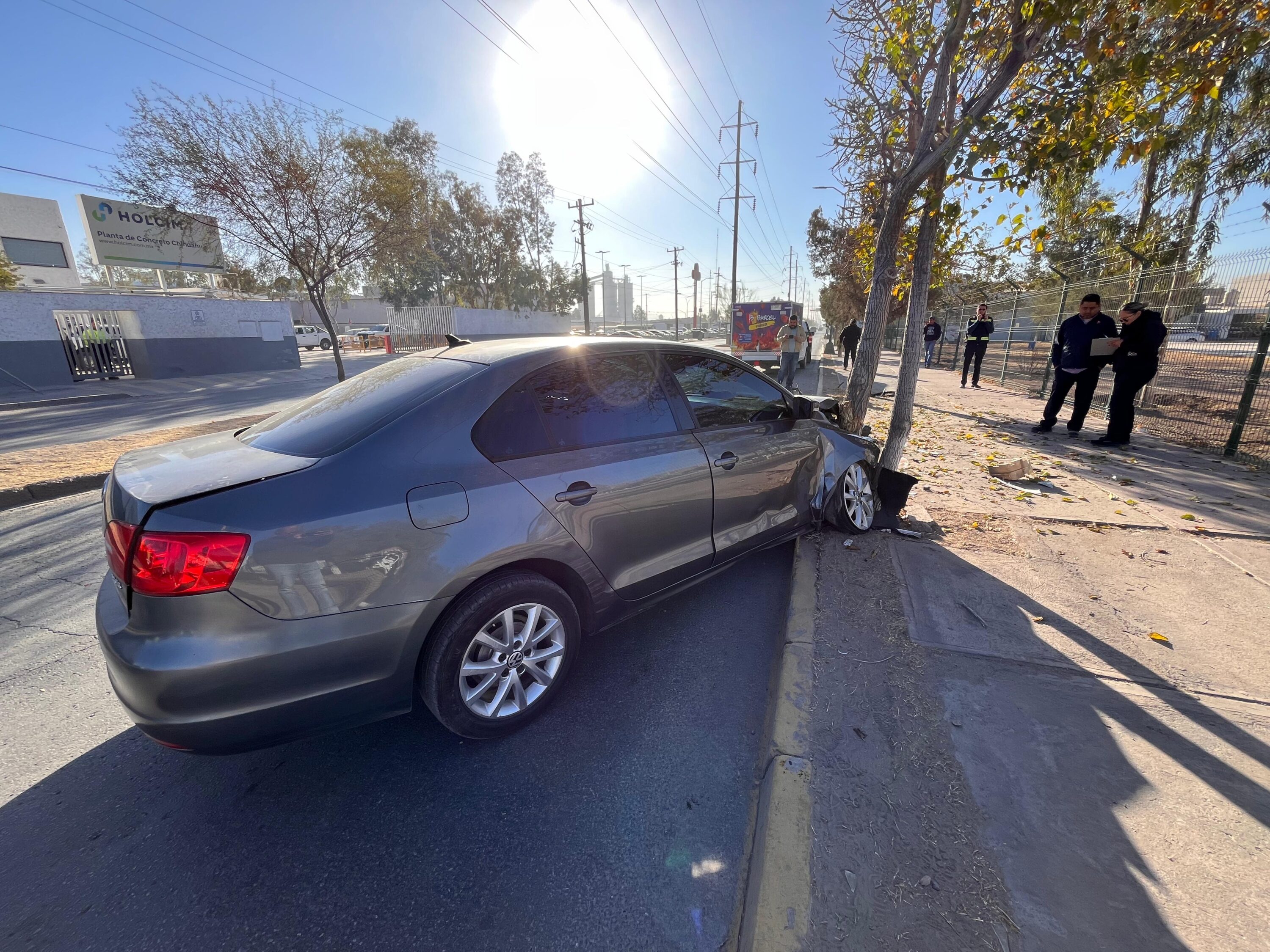 Choca vehículo contra árbol en la avenida de las Industrias