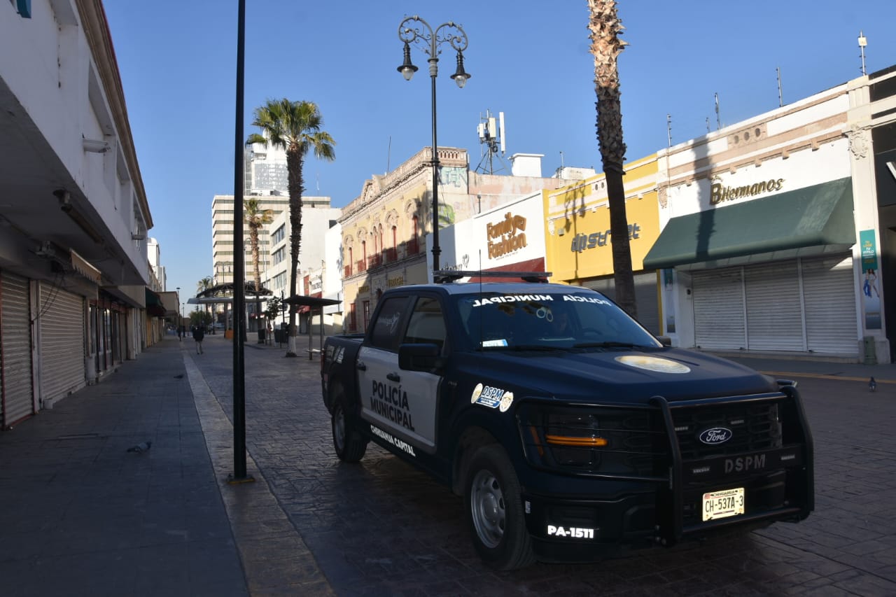 Vigilancia día y noche en el centro de la ciudad de Chihuahua